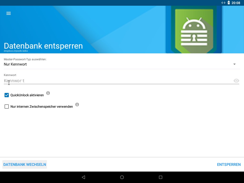 Laden Sie diese App herunter: https://play.google.com/store/apps/details?id=keepass2android.keepass2android