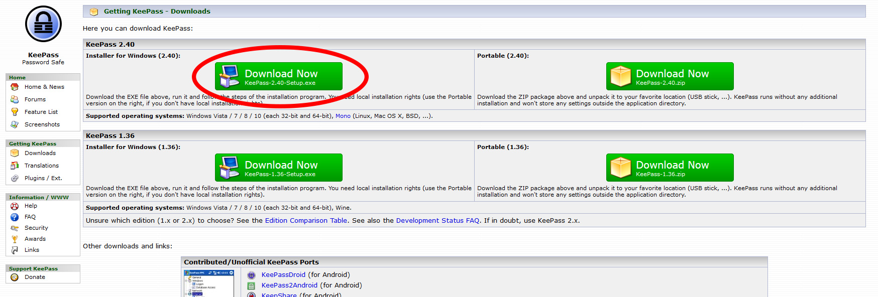 Holen Sie sich die aktuelle Version des Programms auf der offiziellen Website von Keepass: https://keepass.info/download.html